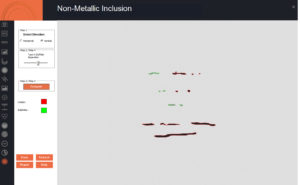 Entsprechend ASTM B 276 wird der Partikel detektiert und rot eingefärbt. Die Anzahl der Partikel, sowie die Partikelgröße wird mit Minimum, Maximum und Mittelwert ausgegeben.