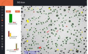 Automatische Einknopflösung, ermöglicht die Erfassung der Graphitgröße und deren Klassifizierung von 1-8 basierend auf ASTM 247. Klassifizierung der Type erfolgt von A-E